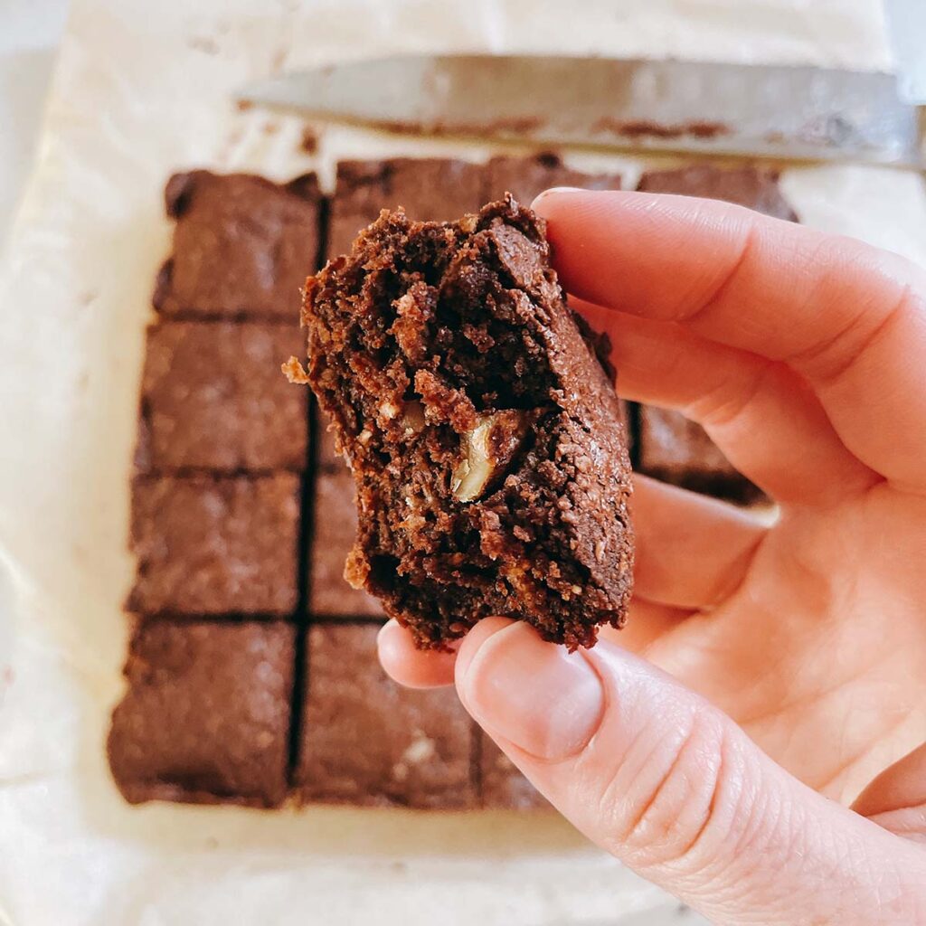 These brownies are admittedly on the less sweet side, but that does allow the flavors of the walnuts and almond butter to shine through a bit more. The sea salt on top also helps accentuate all the flavors and enhances the chocolate. If you make these, I’d love to know what you think in the comments!